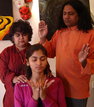 The Devadhara Spiritual Blessing Awakens Your Healing Powers: The first major step in the workshop is the Devadhara Blessing, a powerful and beautiful spiritual process. It literally plugs you in to sources of cosmic power, transforming the way healing energy flows through your body. To spiritual eyes, The Devadhara Healer is magnificent resembling a great glowing sun drawing force from all corners of the universe. For the participant, the experience varies from visions of the divine, to deep renewal: "I burst into tears, the blessing swept deep into me, renewing me" -- Indroneil.