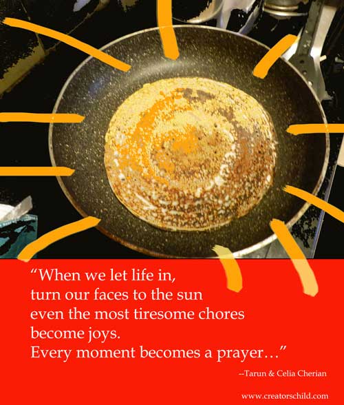 When we let life in, turn our faces to the sun even the most tiresome chores become joys. Every moment becomes a prayer….